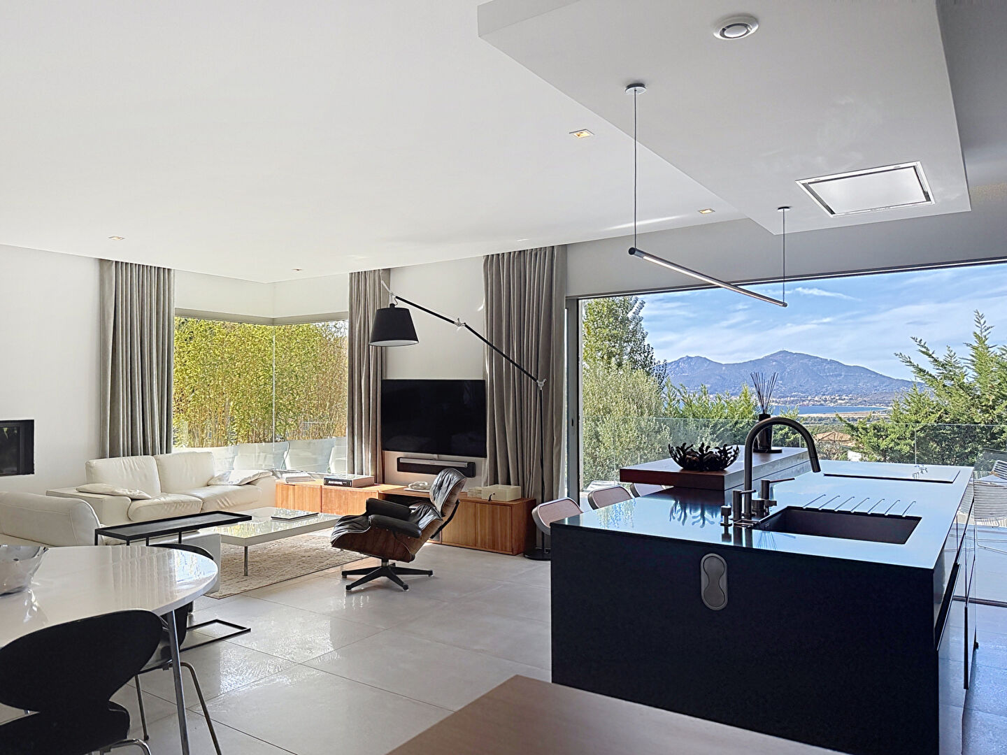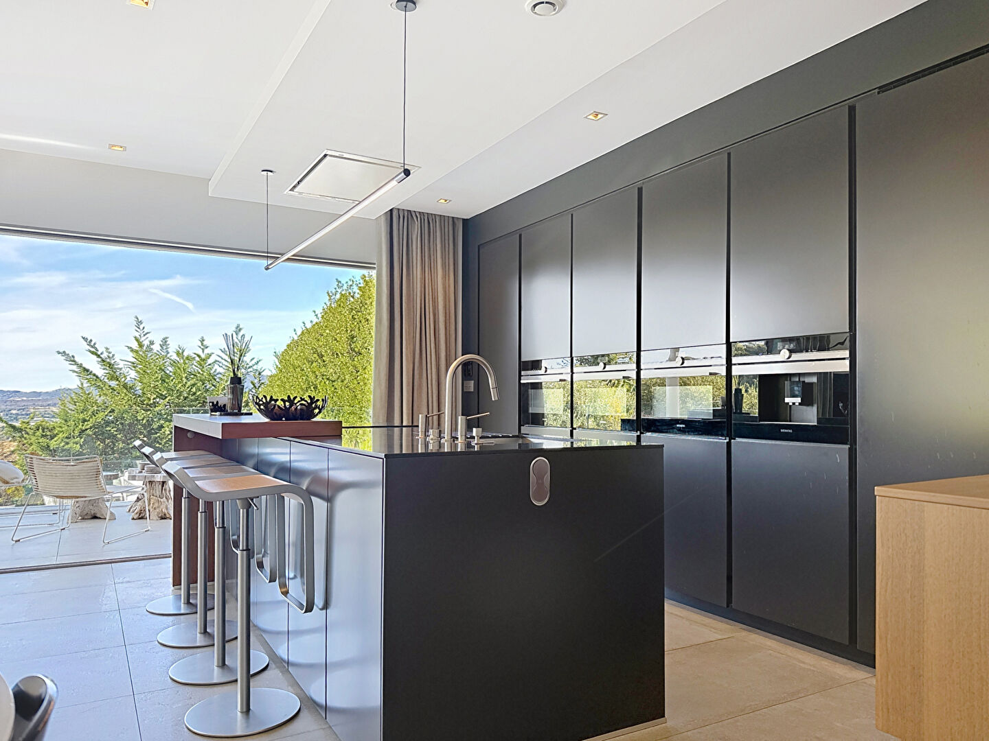 La villa se compose de 4 chambres aux lignes épurées et 3 salles d’eau, conçues comme des espaces de bien- être privatifs. Le séjour, baigné de lumière, s’ouvre sur l’extérieur par de larges baies vitrées. La cuisine Leicht, véritable pièce maîtresse, est équipée de matériel professionnel.