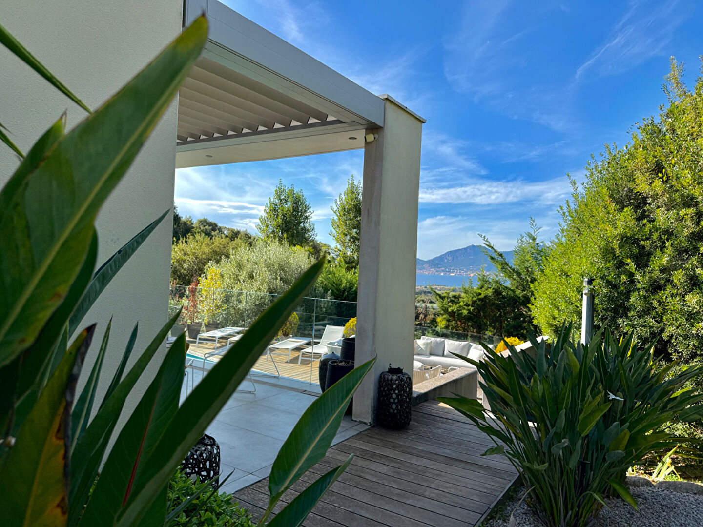 A l’extérieur, le raffinement se prolonge : une piscine aux lignes pures sécurisée par un garde-corps en verre, des jeux d’éclairage subtils intégrés au sol, et une terrasse propice aux soirées d’été face au maquis et au soleil couchant.Les prestations sont complétées par un garage double, deux vastes caves, ainsi qu’un potentiel d’extension permettant d’adapter la propriété à vos projets.